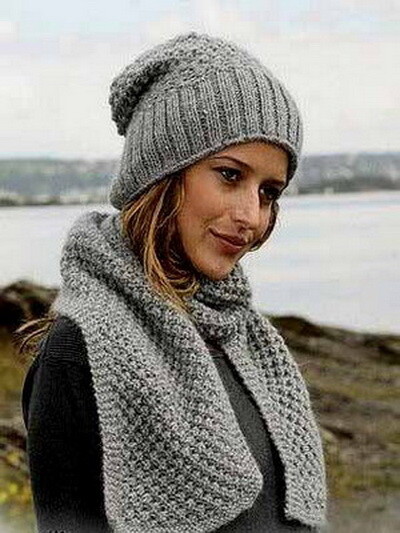 Шарфы вязанные, длинные. Меховые варежки, могут быть муфточки.